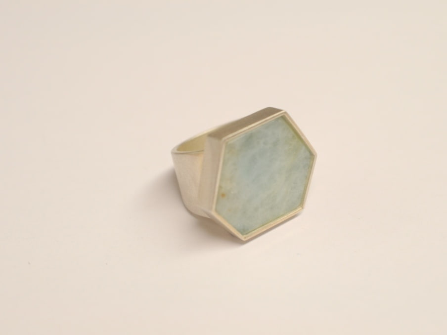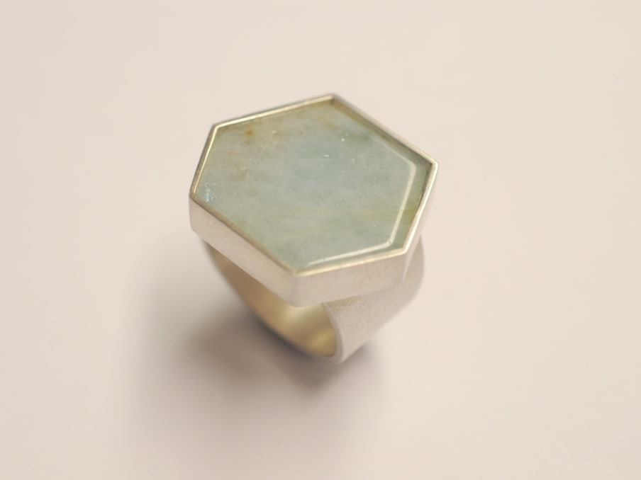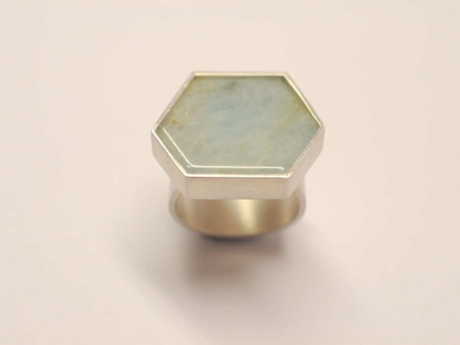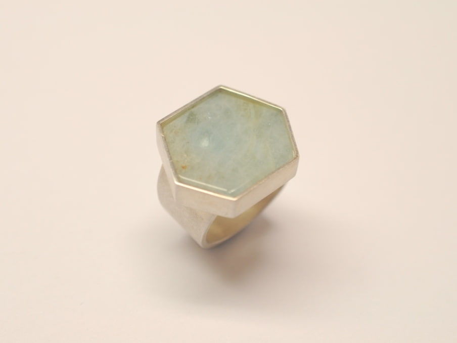 Breiter Damenring aus 925 Silber gefasst mit einem sechseckigen Aquamarin. Der Ring ist Unikatschmuckstück und auch nur in der entsprechenden Ringgröße 60 erhältlich.