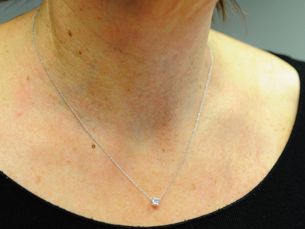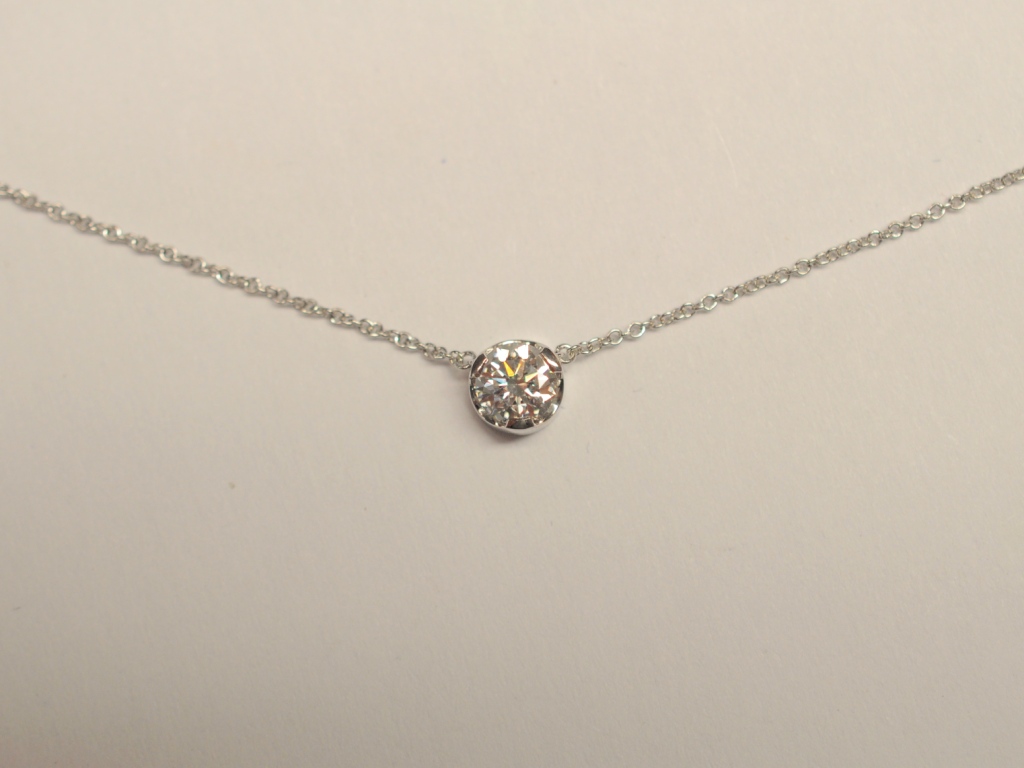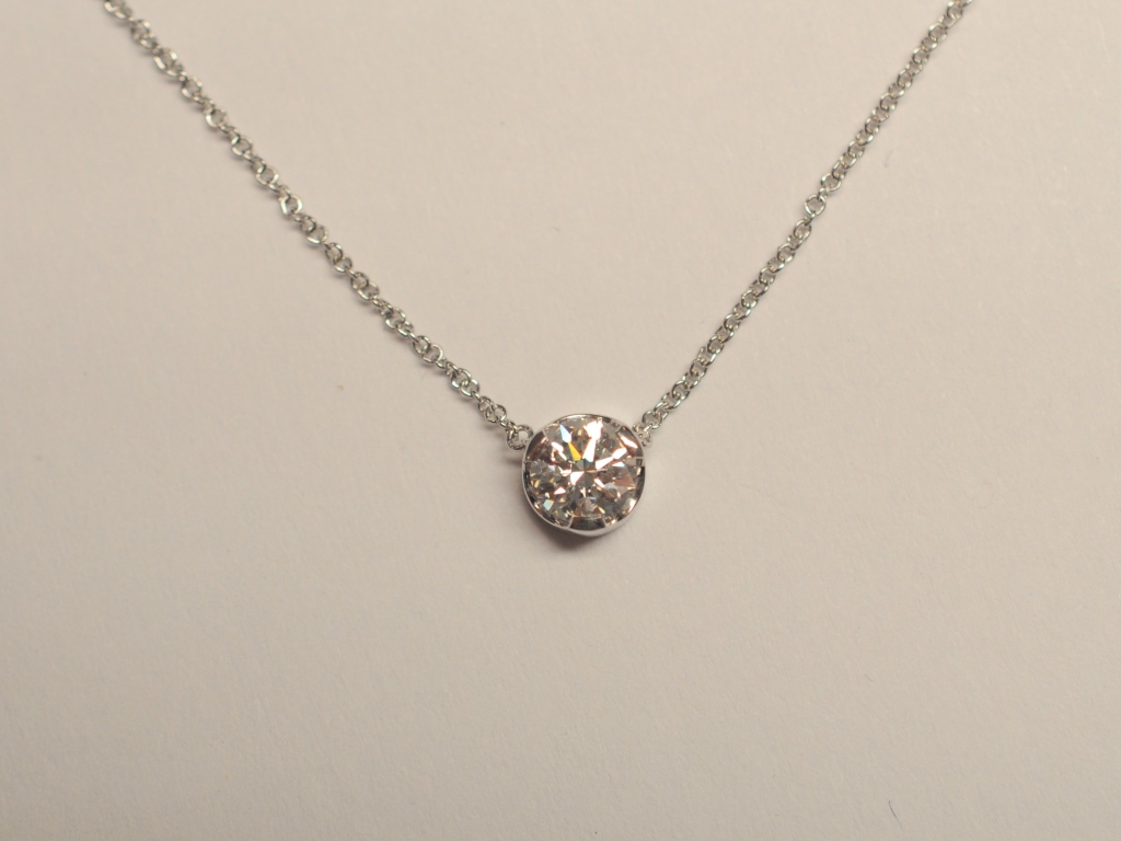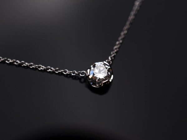 Der Labordiamant ist mit einem Brillantschliff versehen und besitzt eine sehr gute Qualität mit der Bezeichnung TW/VS1. Gefasst ist der Brillant in einer Zargenfassung aus 585 Weißgold.
