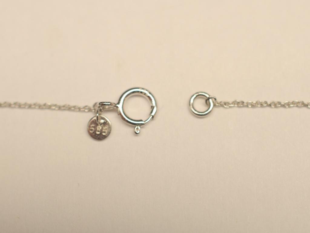 Die Kette hat eine Gesamtlänge von 42 cm, eine Stärke von 0,7 mm Durchmesser und ist mit einem 585 WG Federringverschluss ausgestattet.