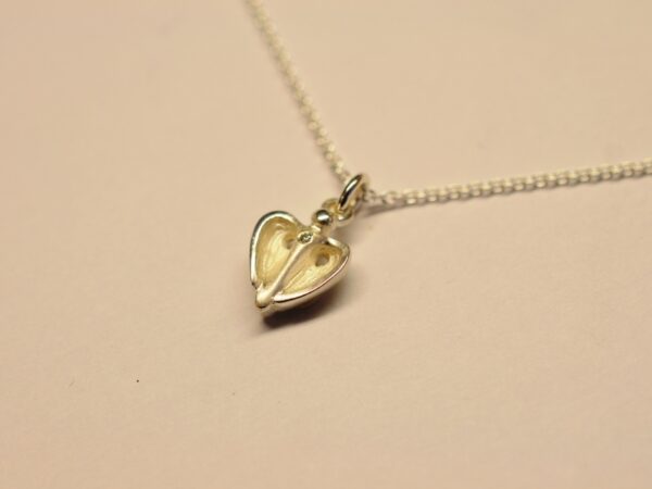 Dies ist die kleinste Ausführung meiner aktuell verfügbaren Engelanhänger. Der herzförmige Schutzengel ist mittig mit einem kleinen Diamanten besetzt.