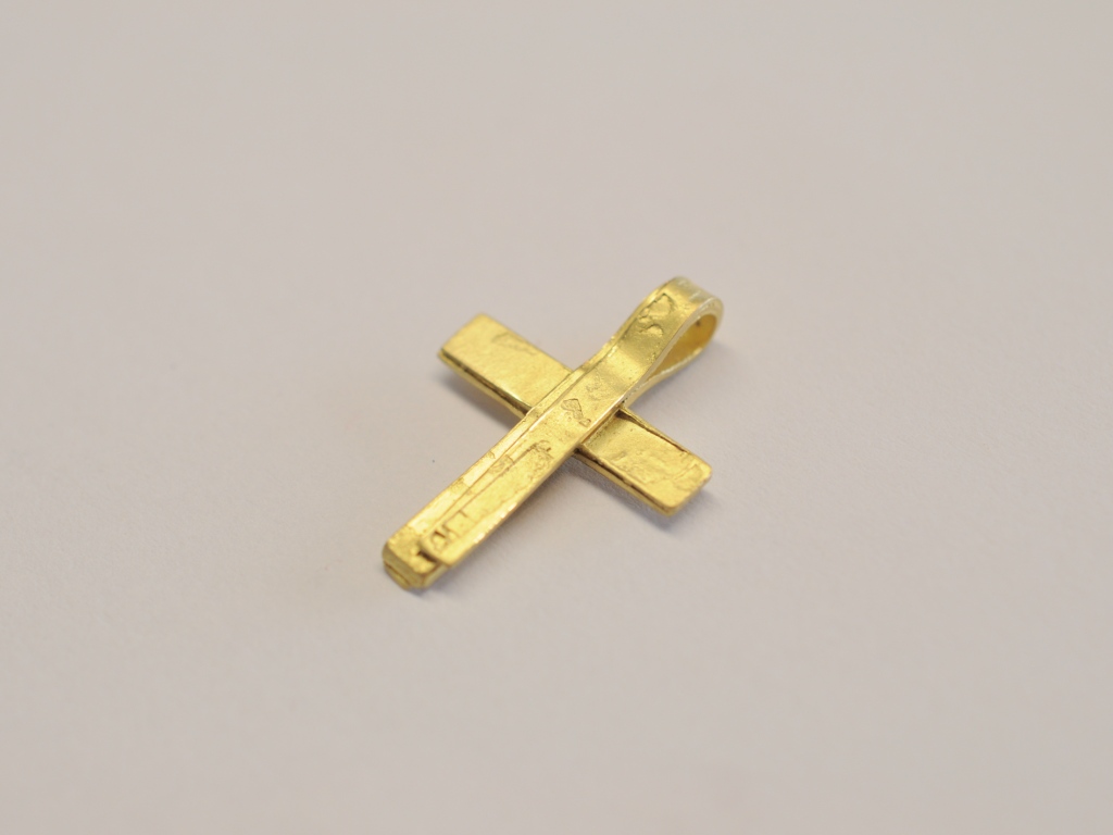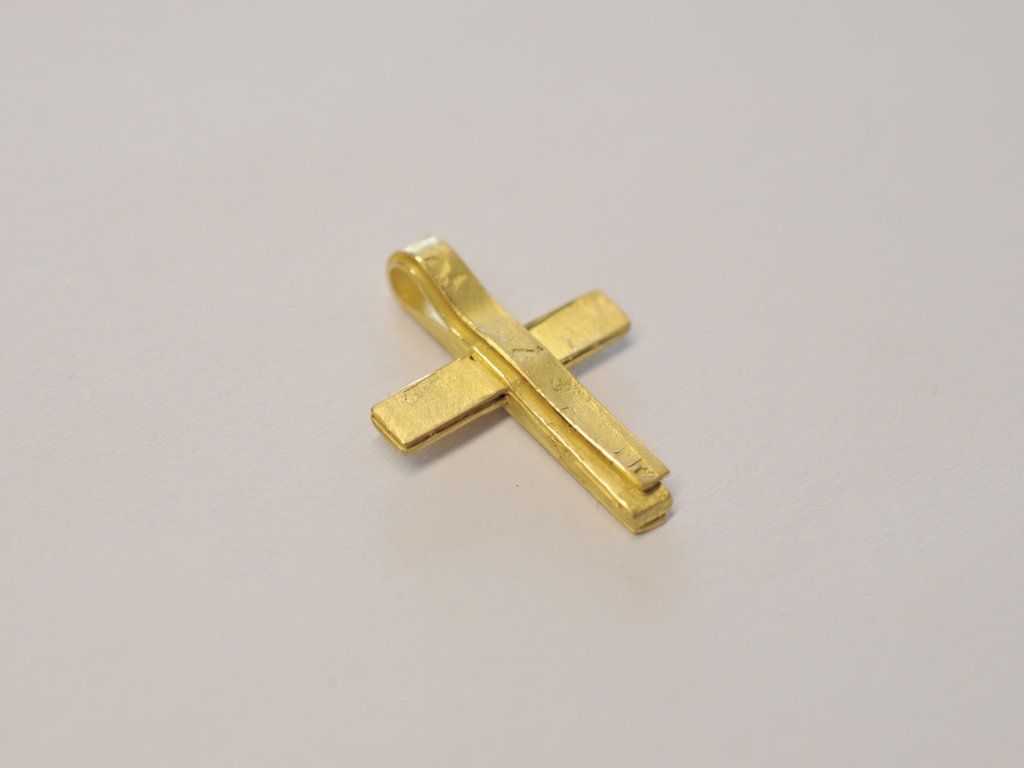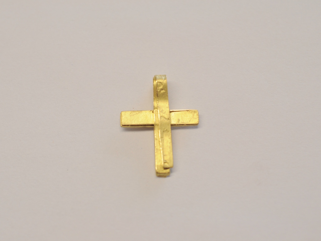 Das Kreuz ist aus Wachsbändern modelliert und anschließend in 750er Gelbgold (18 Karat) gegossen.