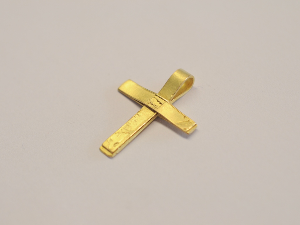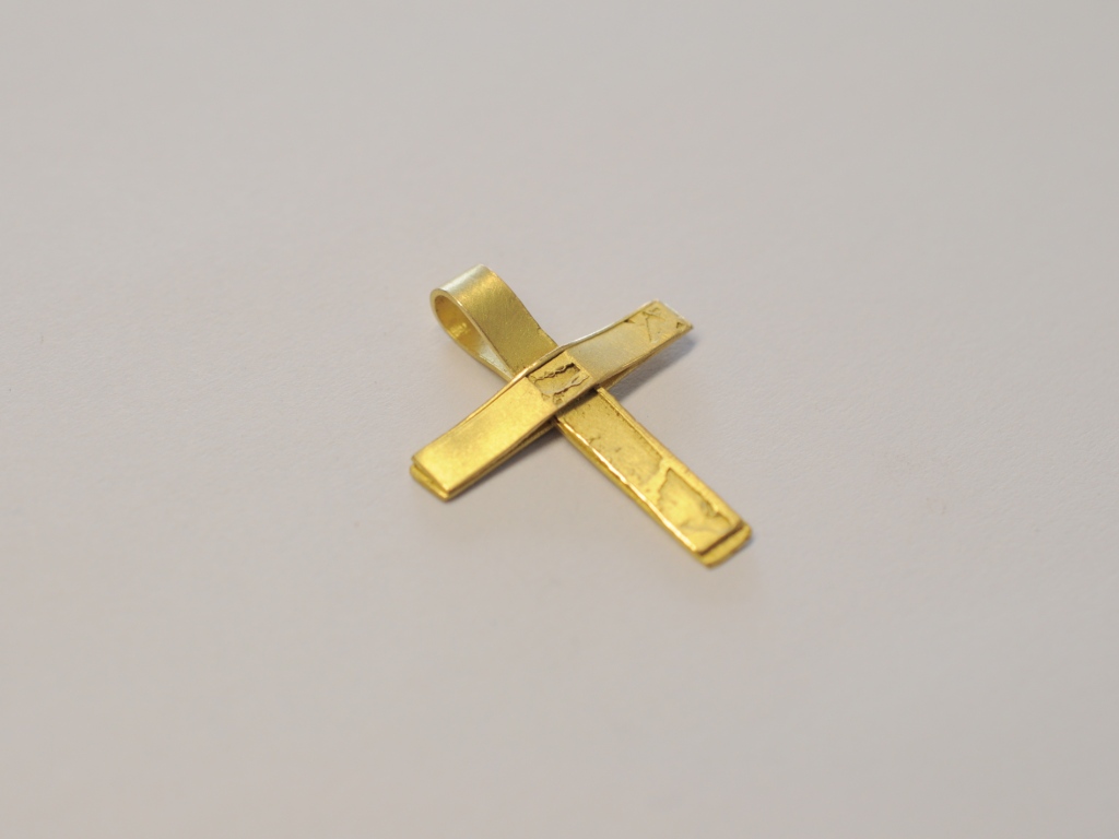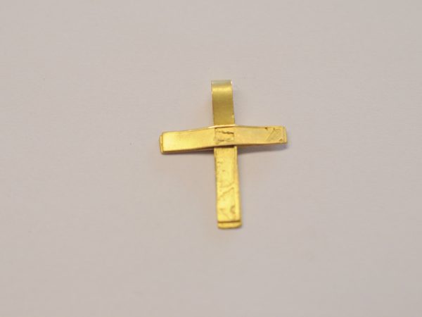 Das Kreuz ist aus Wachsbändern modelliert und anschließend in 750er Gelbgold (18 Karat) gegossen.