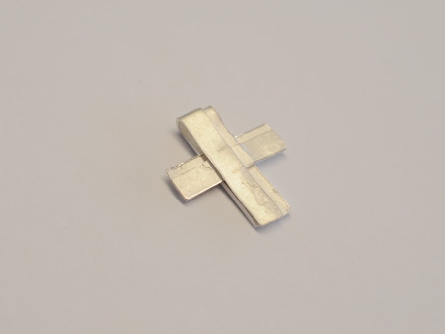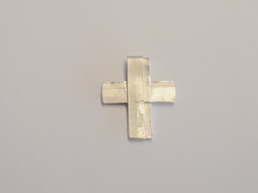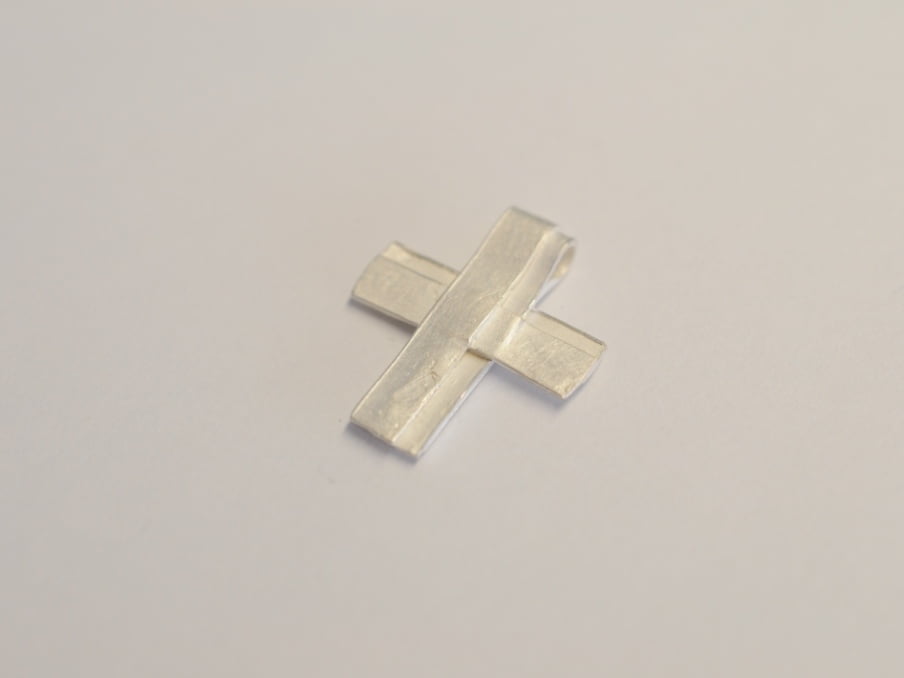 Das Kreuz ist aus Wachsbändern modelliert und anschließend in 925 Silber gegossen.
