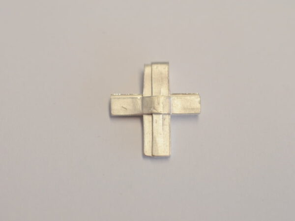 Das Kreuz ist aus Wachsbändern modelliert und anschließend in 925 Silber gegossen.
