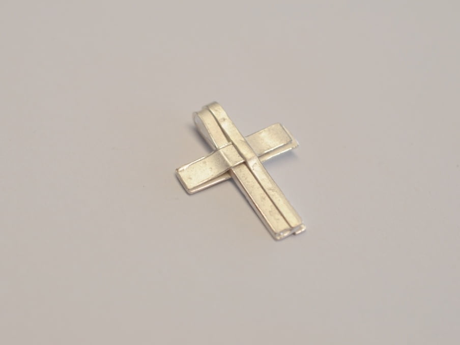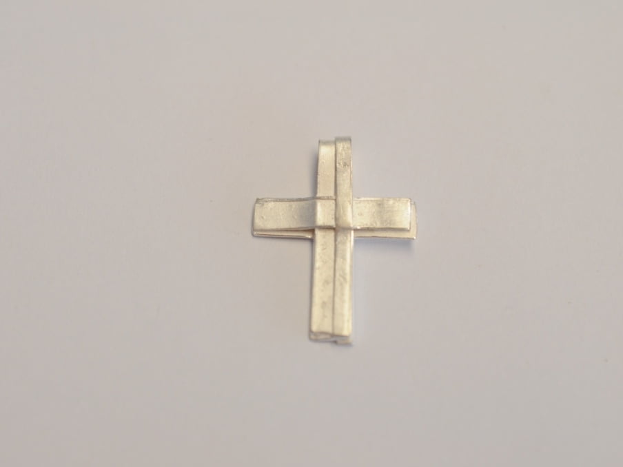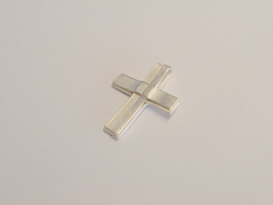 Das Kreuz ist aus Wachsbändern modelliert und anschließend in 925 Silber gegossen.