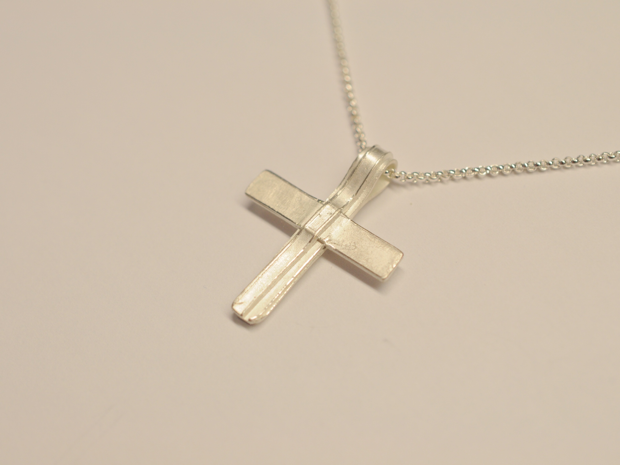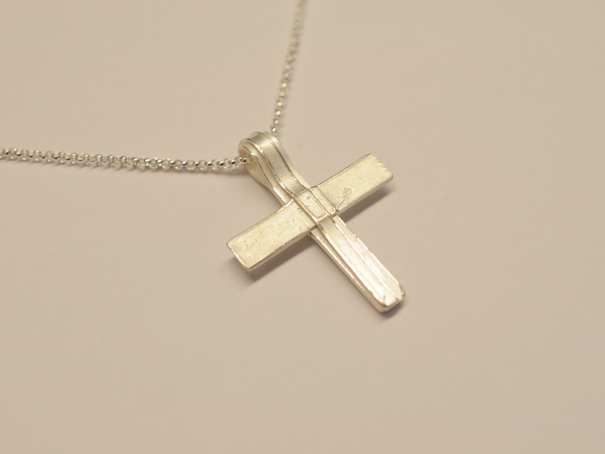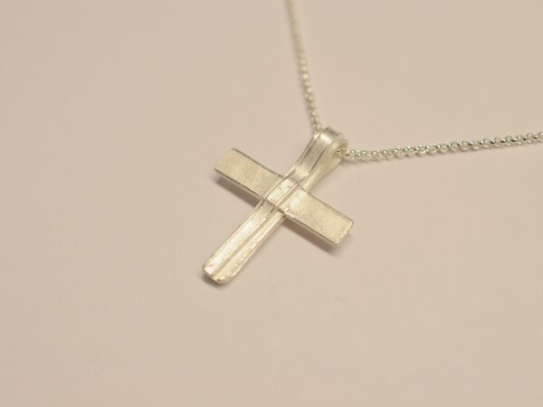 Einfach schön und eben anders als industriell gefertigte Kreuzanhänger. Das Schmuckstück ist auch als Geschenk für Kinder zur Kommunion oder Konfirmation sehr beliebt.