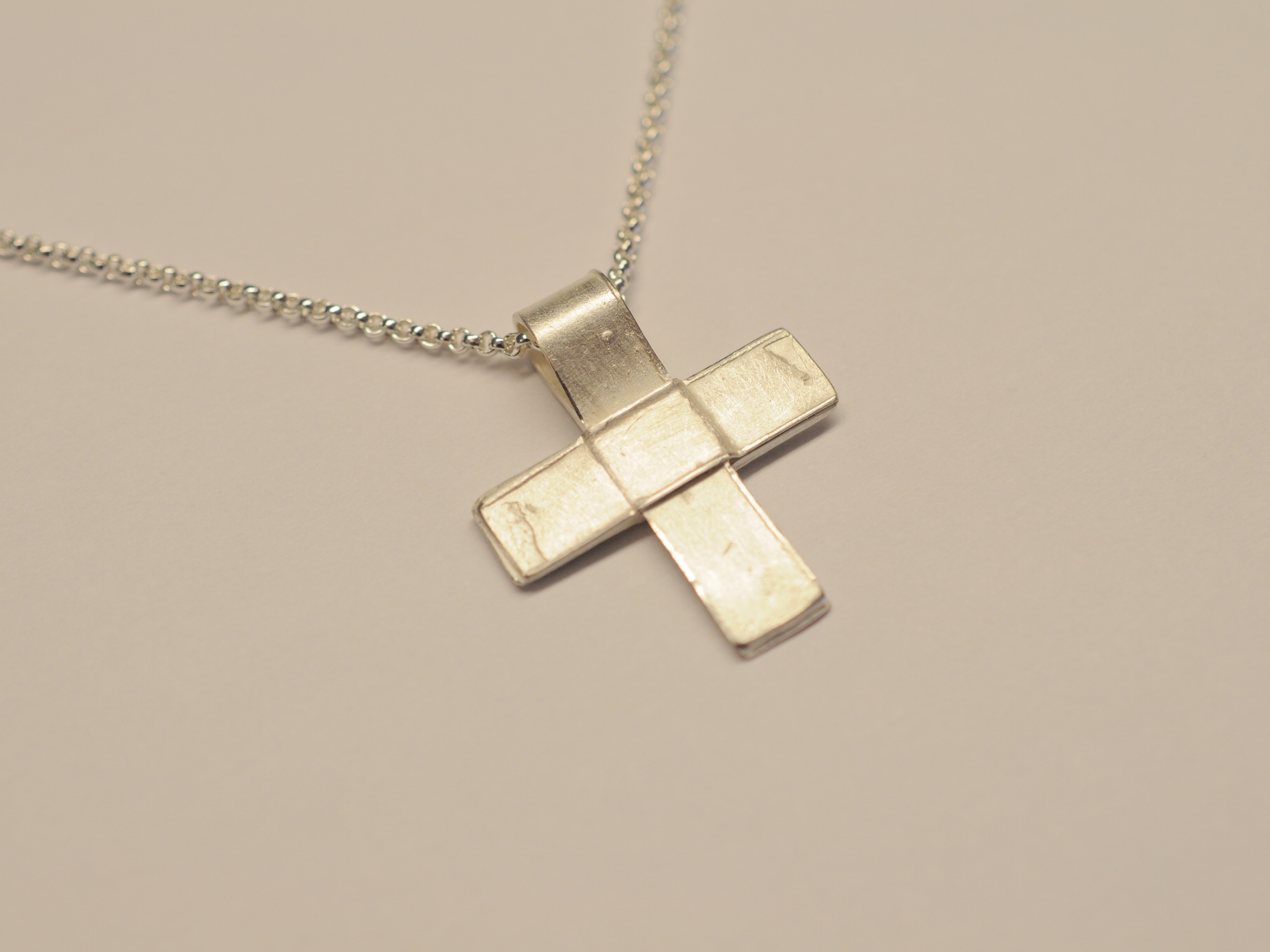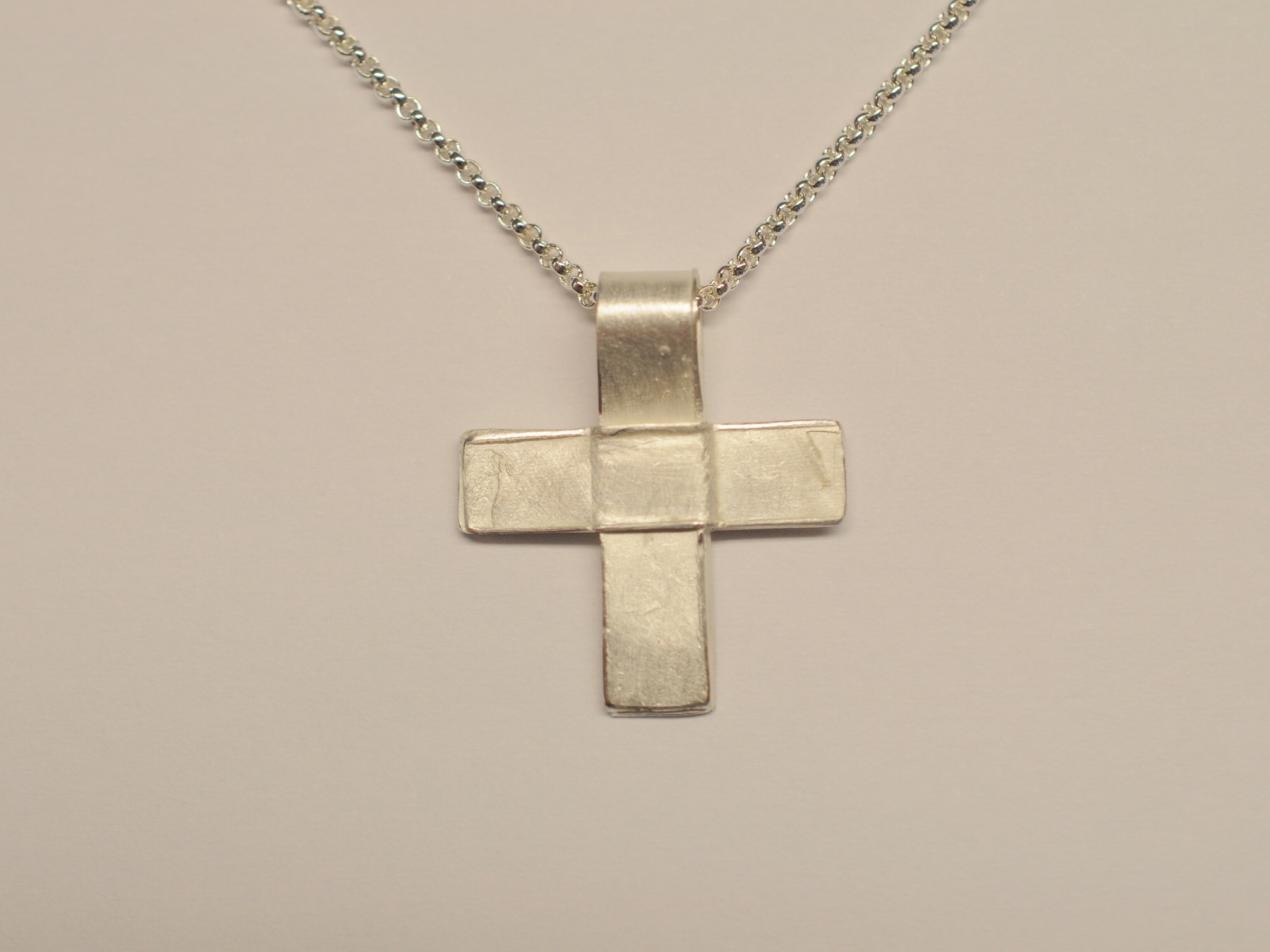 Das Kreuz habe ich aus Wachsbändern modelliert und anschließend in 925 Sterling Silber gegossen. Es handelt sich bei dem Anhänger um ein Unikatkreuz, wobei keine Form angefertigt wurde. Das Kreuz besticht durch eine antik wirkende Oberfläche mit beabsichtigten Guss-Strukturen, sogenannten Lunkern. Einfach schön und eben anders als industriell gefertigte Kreuzanhänger.