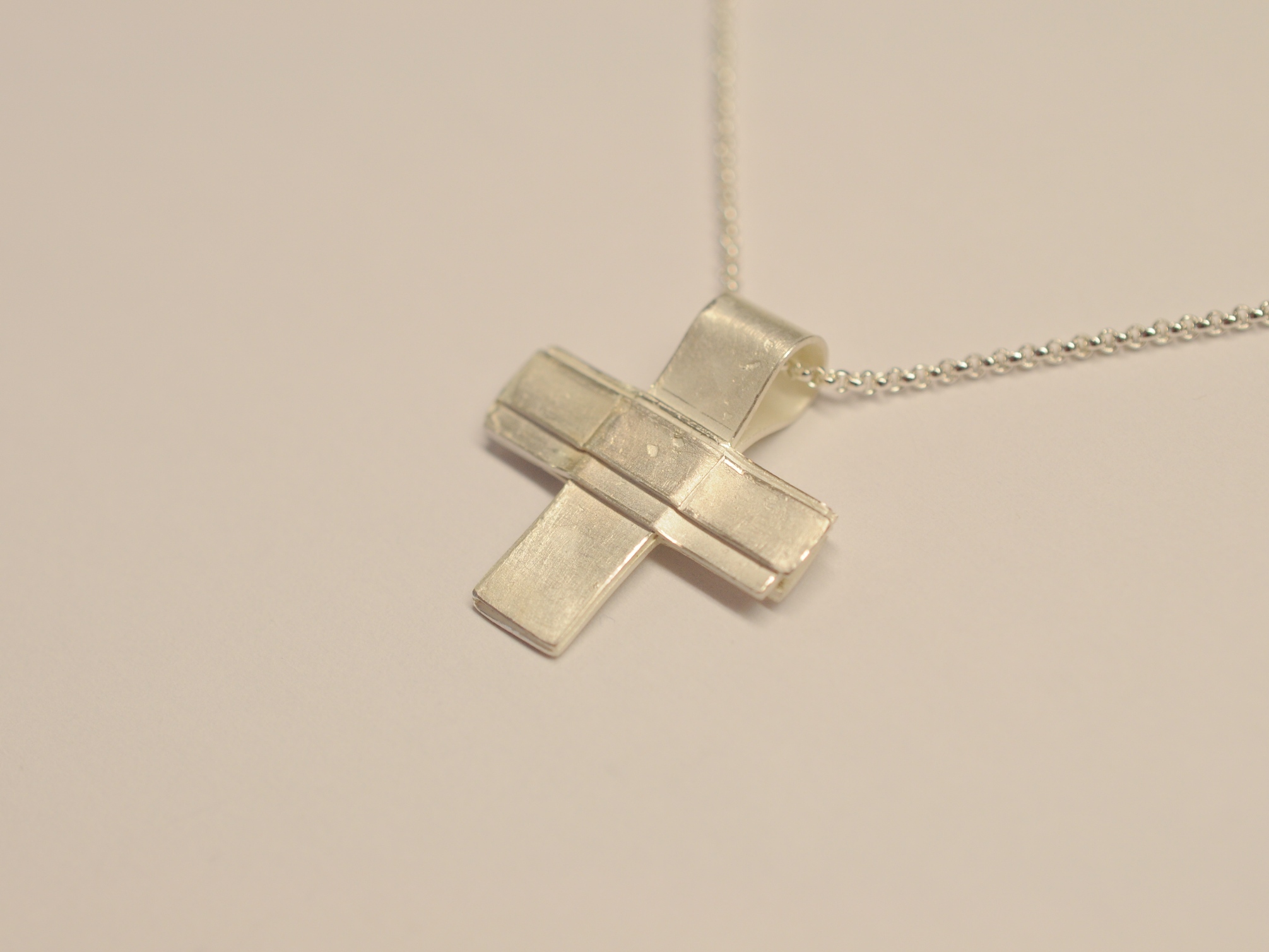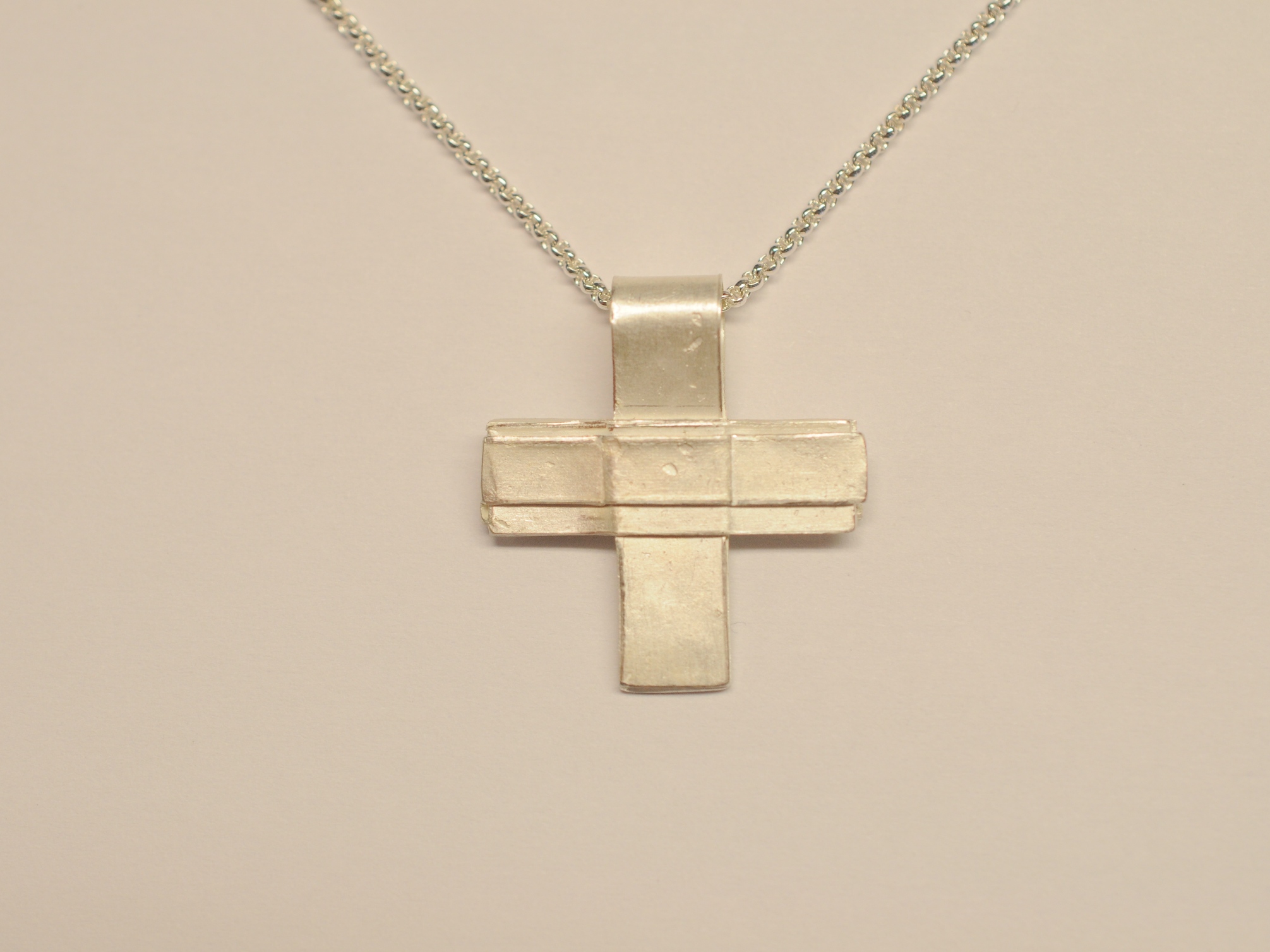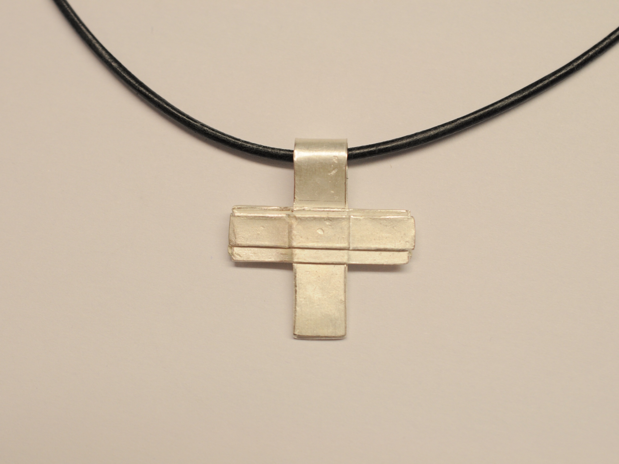 Das Kreuz habe ich aus Wachsbändern modelliert und anschließend in 925 Sterling Silber gegossen. Es handelt sich bei dem Anhänger um ein Unikatkreuz, wobei keine Form angefertigt wurde. Das Kreuz besticht durch eine antik wirkende Oberfläche mit beabsichtigten Guss-Strukturen, sogenannten Lunkern. Einfach schön und eben anders als industriell gefertigte Kreuzanhänger.