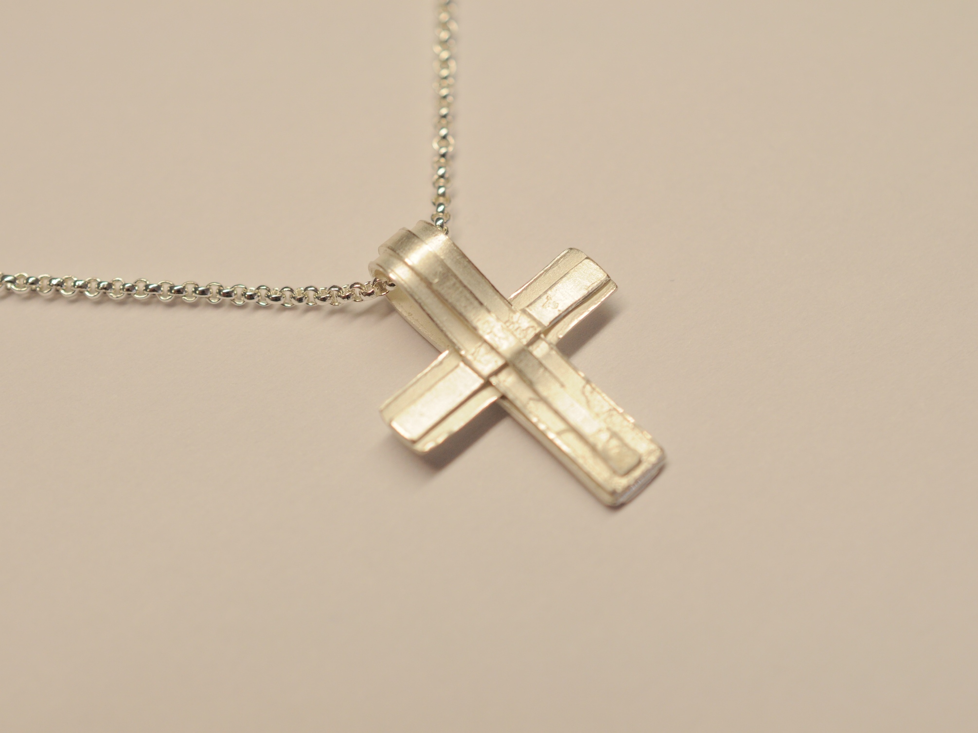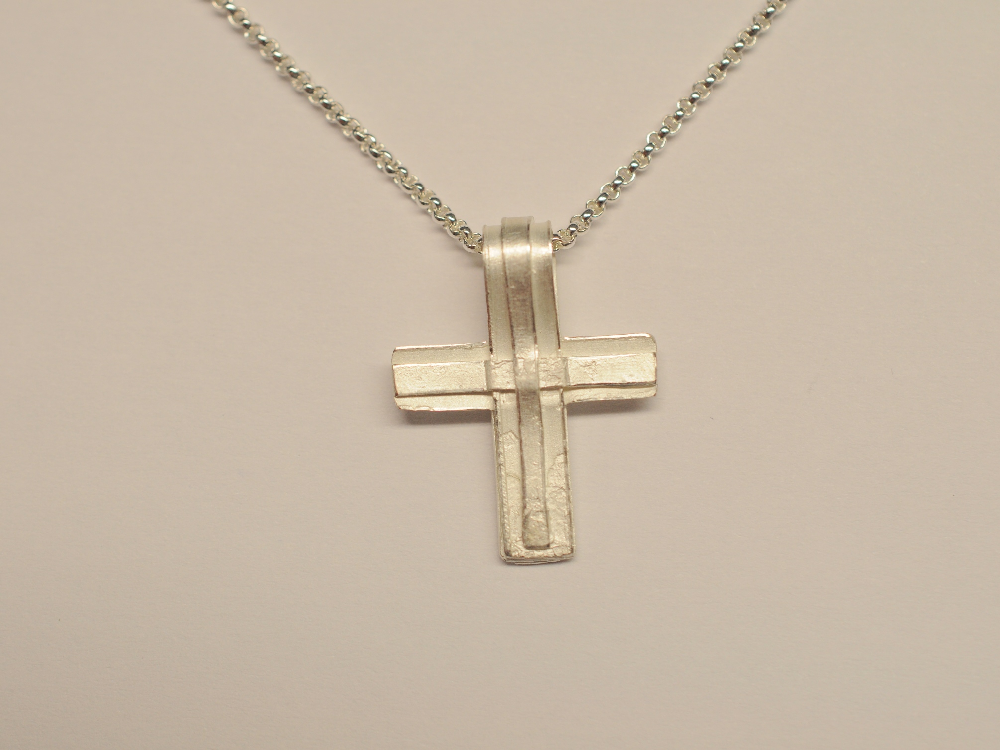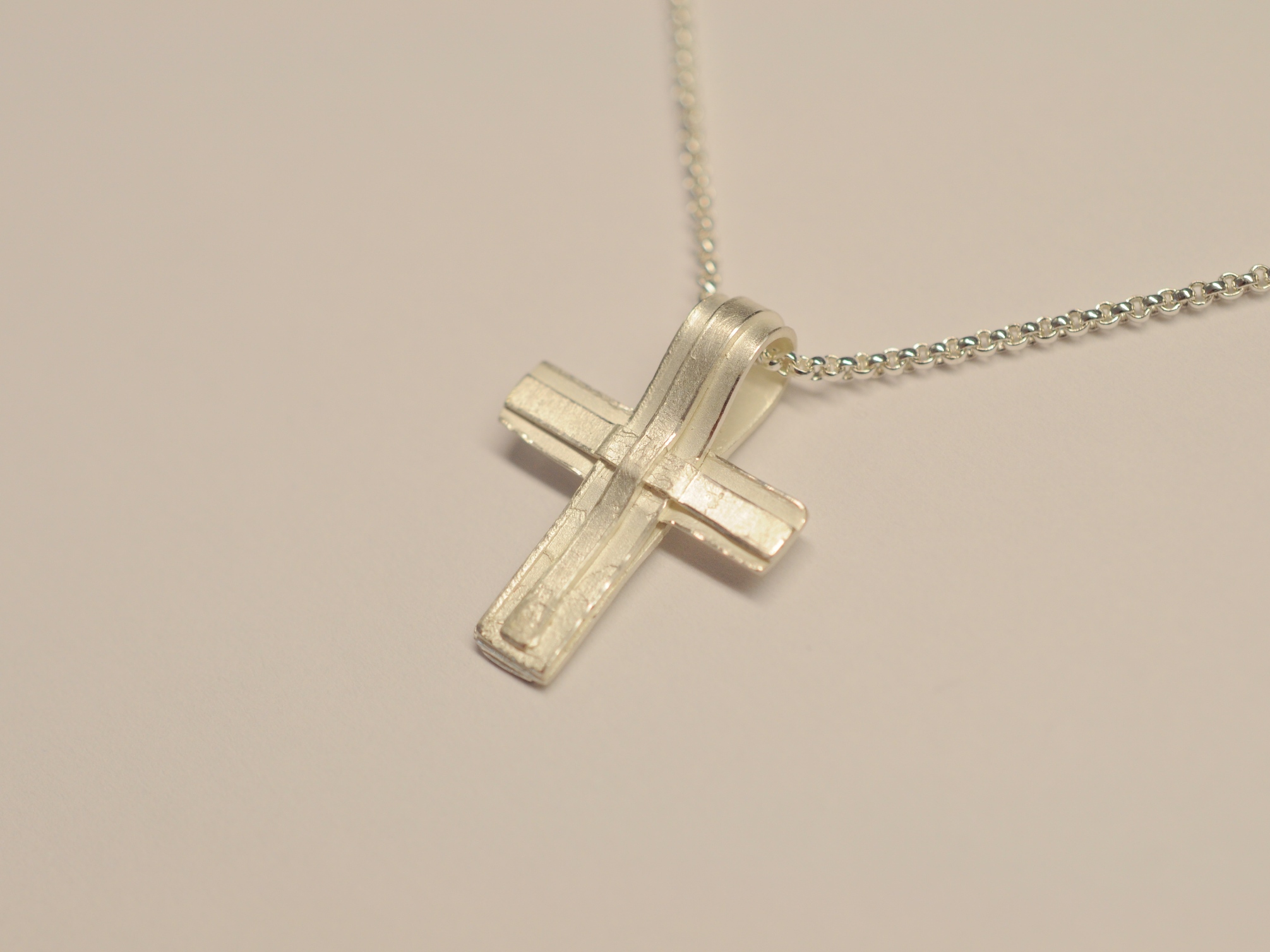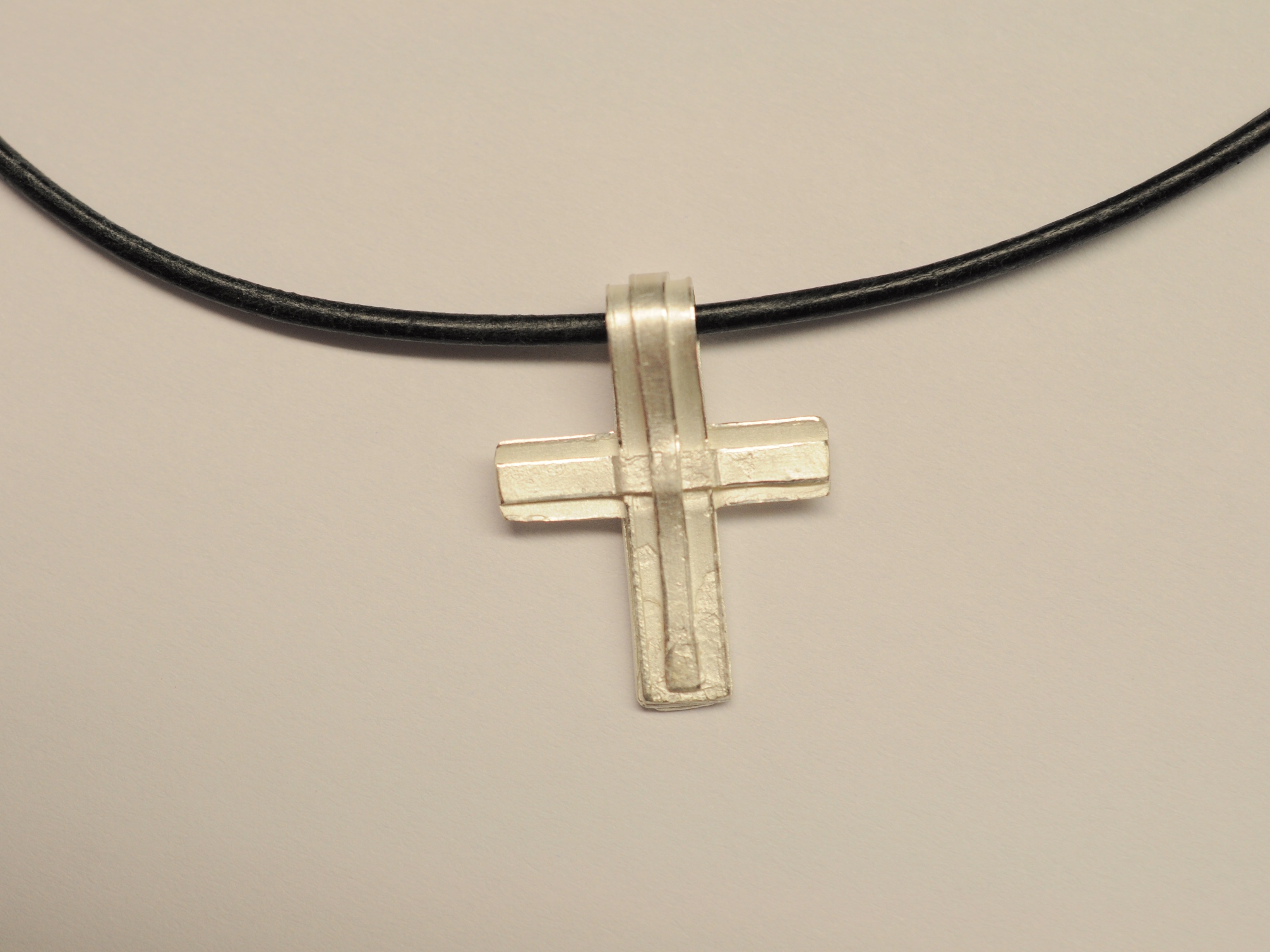 Das Kreuz habe ich aus Wachsbändern modelliert und anschließend in 925 Sterling Silber gegossen. Es handelt sich bei dem Anhänger um ein Unikatkreuz, wobei keine Form angefertigt wurde. Das Kreuz besticht durch eine antik wirkende Oberfläche mit beabsichtigten Guss-Strukturen, sogenannten Lunkern. Einfach schön und eben anders als industriell gefertigte Kreuzanhänger.