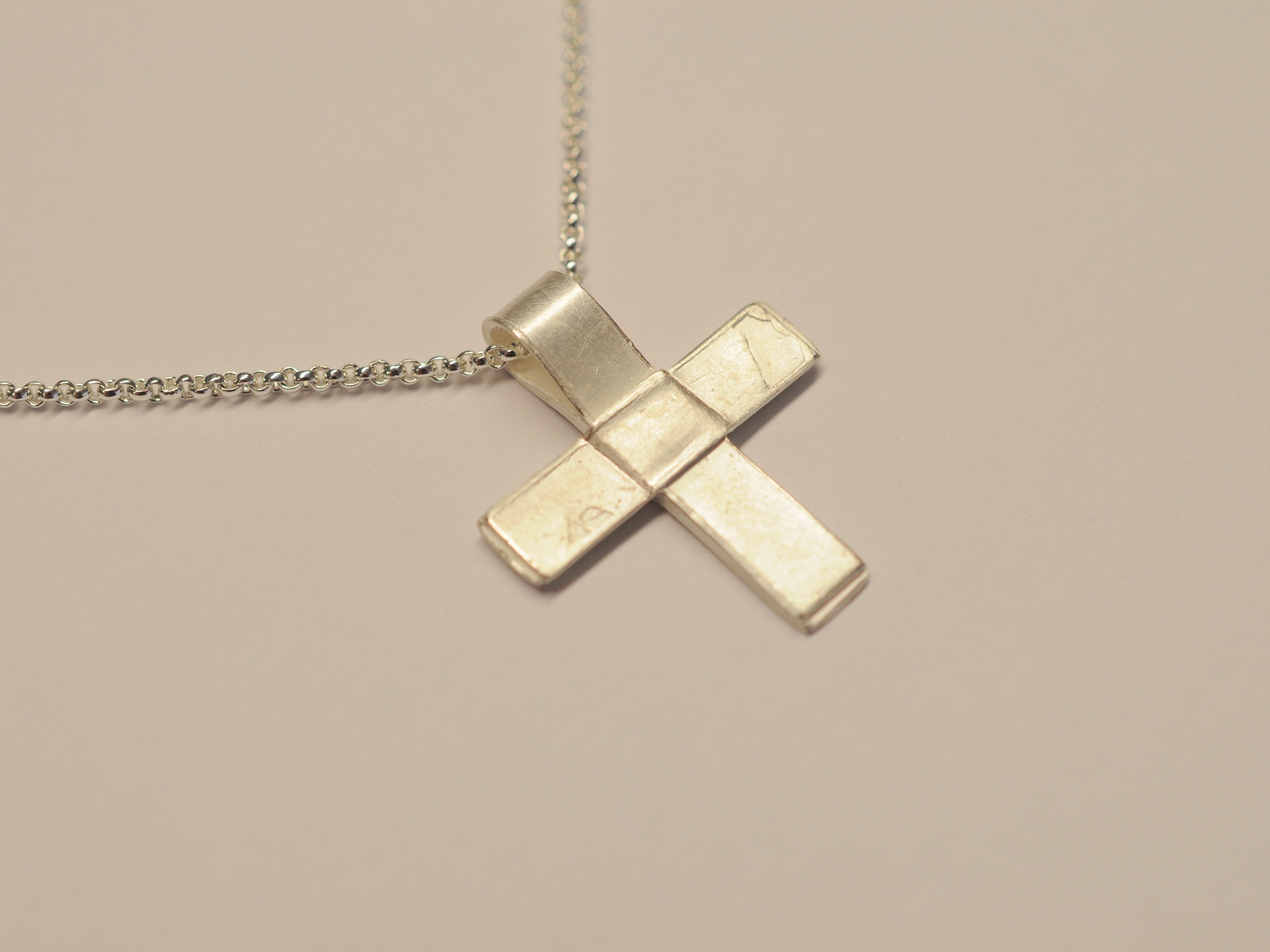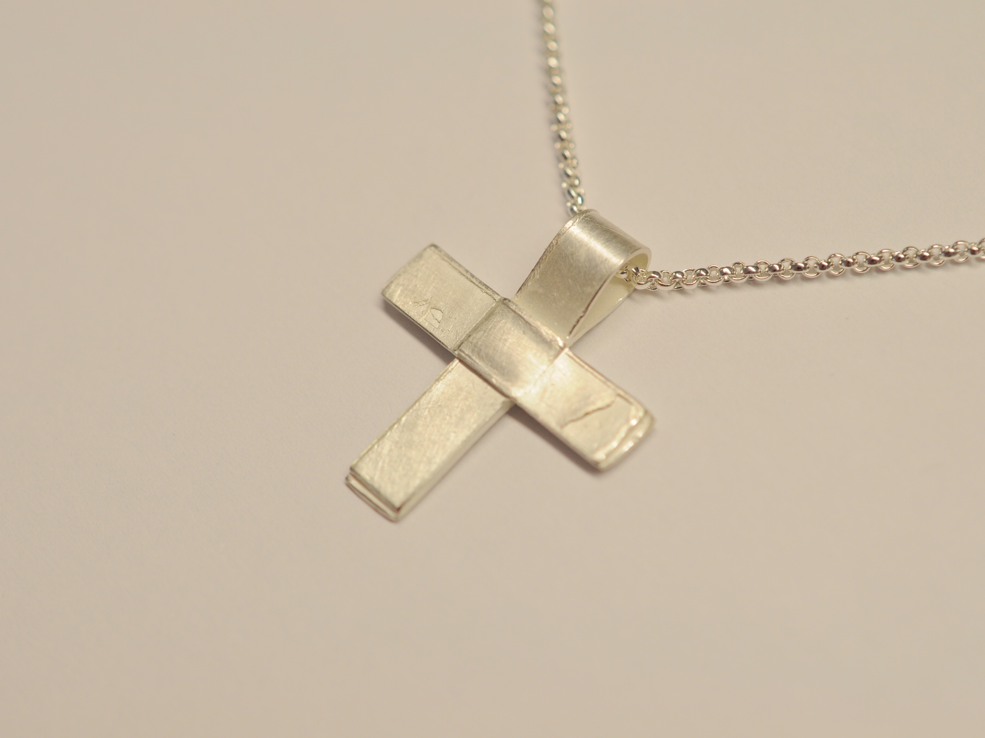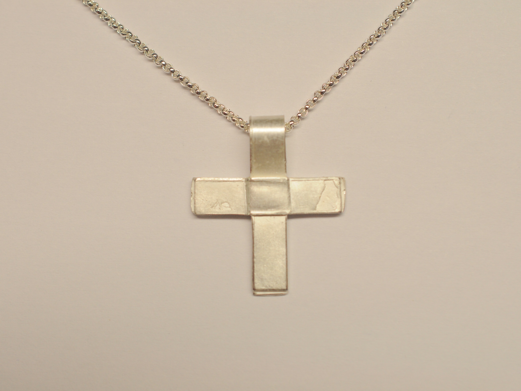 Das Kreuz habe ich aus Wachsbändern modelliert und anschließend in 925 Sterling Silber gegossen. Es handelt sich bei dem Anhänger um ein Unikatkreuz, wobei keine Form angefertigt wurde. Das Kreuz besticht durch eine antik wirkende Oberfläche mit beabsichtigten Guss-Strukturen, sogenannten Lunkern. Einfach schön und eben anders als industriell gefertigte Kreuzanhänger.