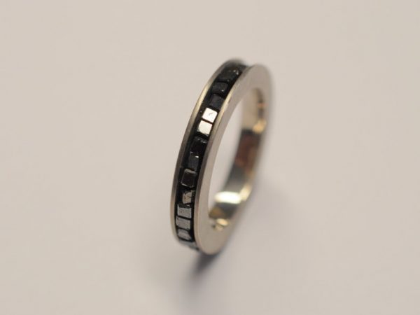 Ring aus 585 Weißgold besetzt mit schwarzen Rohdiamanten
