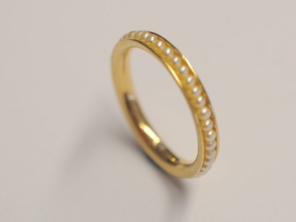 Dieser feine und hochwertige Ring aus 750 Gelbgold (18 Karat) ist besetzt mit wunderschönen kleinen weißen Süßwasserperlen.