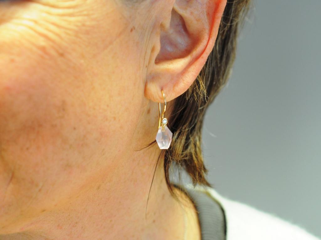 Die Ohrhänger können entweder mit den Rosenquarz Anhängern getragen werden, als auch alleine ohne einen Anhänger. Außerdem können Sie den Bügel mit anderen Edelstein-Anhängern unserer Kollektion erweitern bzw. kombinieren.