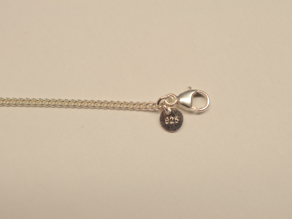 Zartes Panzerarmband (Rundpanzer) für Frauen und Mädchen. Das Armband hat eine Länge von 18,5 cm, eine Breite von 1,4 mm und ist aus 925 Sterling Silber gefertigt. Die Oberfläche ist glänzend poliert. Als Verschluss dient ein Karabinerschloss aus Silber.