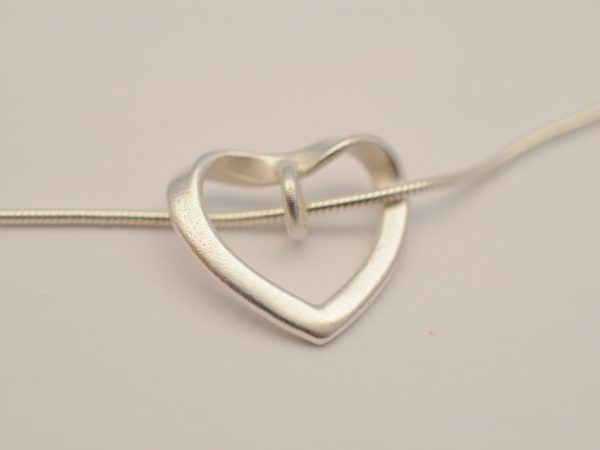 Als besonderes Merkmal zeichnet den Anhänger die gedrehte Herzform mit innenliegender Öse aus. Als Kombinationsprodukt inklusive einer Silber Schlangenkette in 40 cm Länge erhalten Sie dieses Schmuckset zu einem aktuell vergünstigtem Preis.