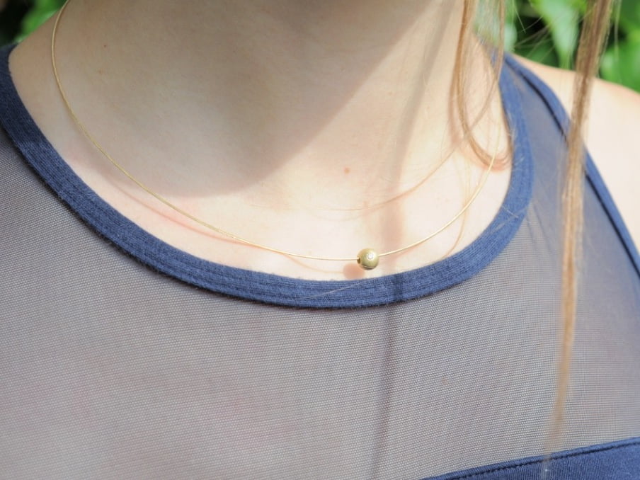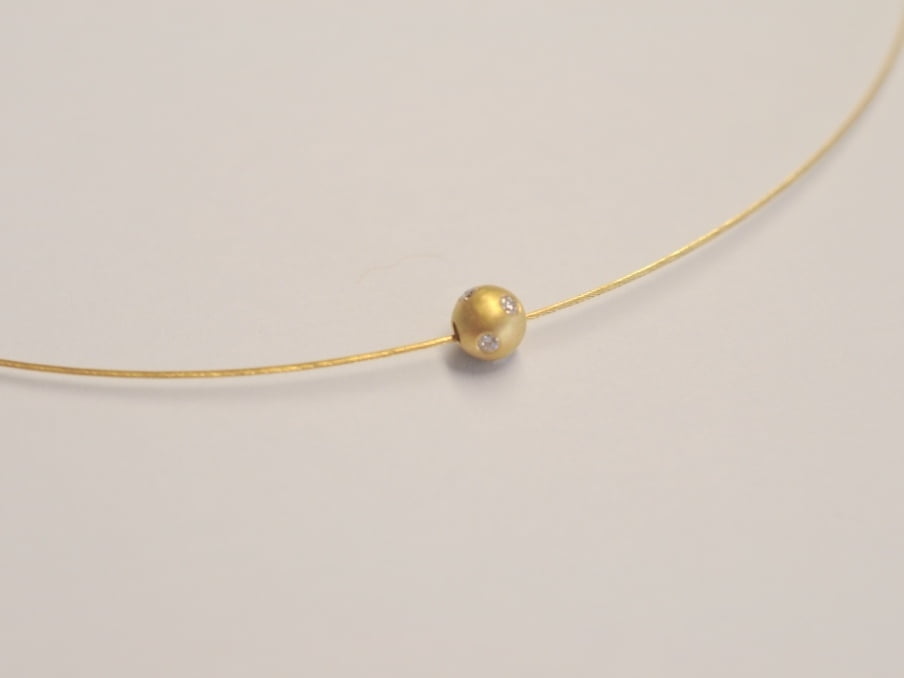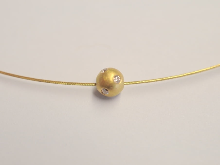 Schmuckset „Sternenhimmel“: Kugel aus 750 Gelbgold mit 5 Diamanten an zartem Goldseil