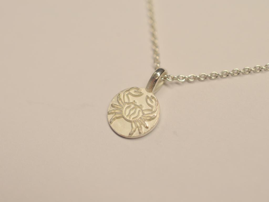 Dieser Tierkreiszeichen Anhänger „Krebs“ ist in eigener CAD Arbeit entstanden und aus 925 Sterling Silber gefertigt. Der zarte Kettenanhänger ist für Erwachsene und Kinder geeignet.